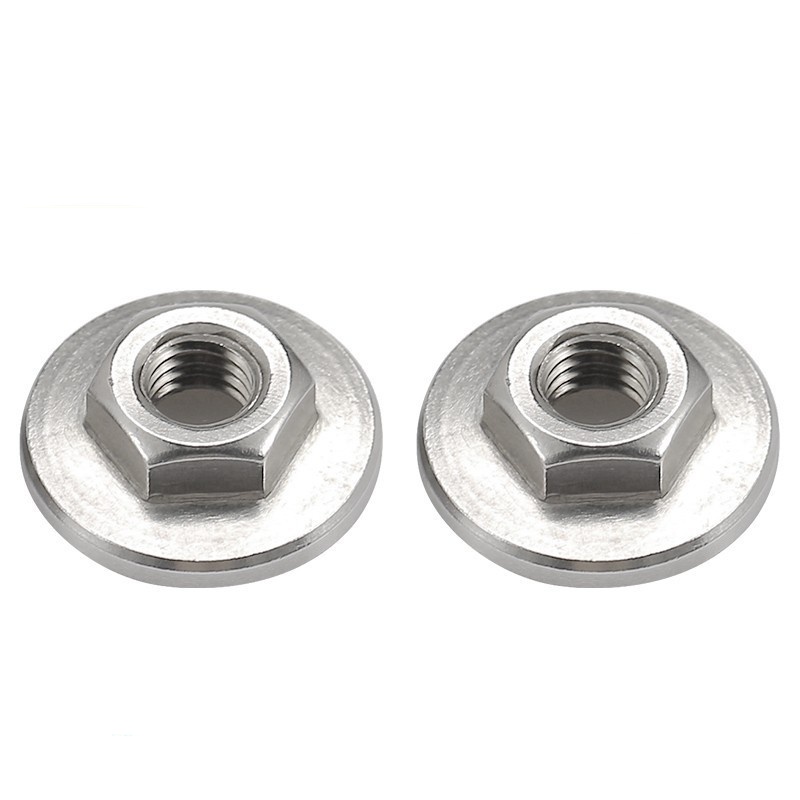 Ennek az anyának a legszembetűnőbb része a beépített karima – ez egy szélesebb, lapos gyűrű, amely a fő anya testéhez kapcsolódik. A karima beépített alátétként működik, így nem kell külön felszerelnie. A fő test hengeres, szabványos belső menettel, amelyek illeszkednek a metrikus vagy angol csavarokhoz.