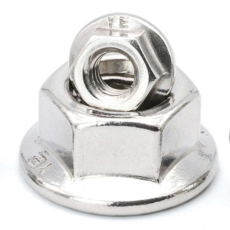 Hex nagy karima diófélékA csavarok rögzítésével és a felületek védelmével rendelkezik. Nincs szükség további alátétekre, és a belső karima megakadályozza a sebességváltót. A költség valamivel magasabb, mint a szokásos diófélék, de időt takarít meg (nem veszít el alátét).