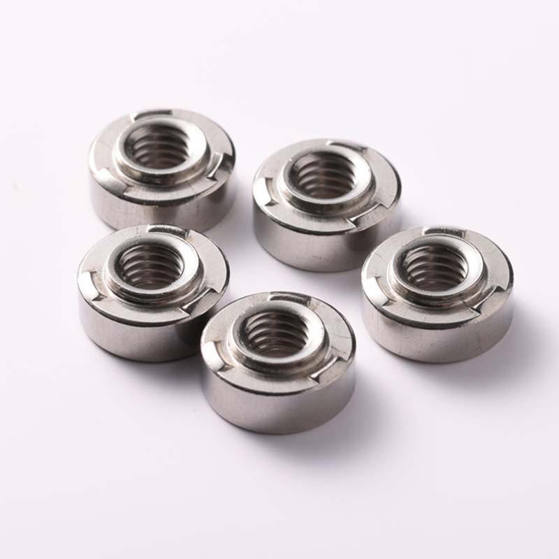 Az önbepattanó kiálló hegesztési anya az alap alatt fogazott vagy fogazott szerkezettel rendelkezik. Ha benyomja őket az előre fúrt lyukakba (speciális hegesztőpisztollyal vagy szerszámmal), ezek a fogak beágyazódnak a fémlemezbe. Ezután elvégezheti a hegesztést az anya központi furatán keresztül. A hegesztés tartósan rögzíti a helyén, de a fogak már szilárdan rögzítették a hegesztési folyamathoz. Az önzáró szerkezet ötletesen megtervezett, lehetővé téve a mechanikus reteszelés egyidejű elérését hegesztés közben, kettős garanciát adva a csatlakozás stabilitására. Erősen alkalmazkodik a hegesztési alkatrészekhez. Legyen szó vékony vaslemezről vagy vastag acéllemezről, szilárdan és gördülékenyen tudja elvégezni a hegesztést és a rögzítést.