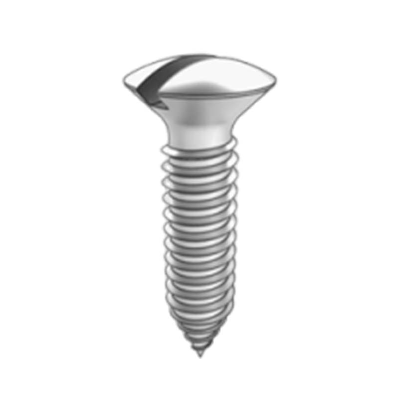 A hornyolt, megemelt süllyesztett fejű menetcsavar egyik vége egy félig süllyesztett fej, résszel és bizonyos görbülettel; a másik vége egy menetes rúd, amely előfúrás nélkül képes saját meneteket fúrni az anyagba. A legtöbb általános használati forgatókönyvet képes kezelni.